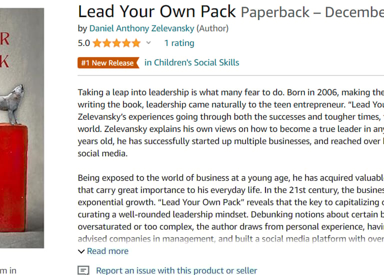 In August of 2022, I started writing my first book “Lead Your Own Pack” reflecting on my start in building an empire of over half a million followers on social media to how anyone can develop useful skills that will translate in their life. Over several months following, I spent time drafting and working with my editor to ultimately finish the final piece. “Lead Your Own Pack,” published in December of 2023, went on to become a top 25 best selling book and a “Number 1 Newest Release.”